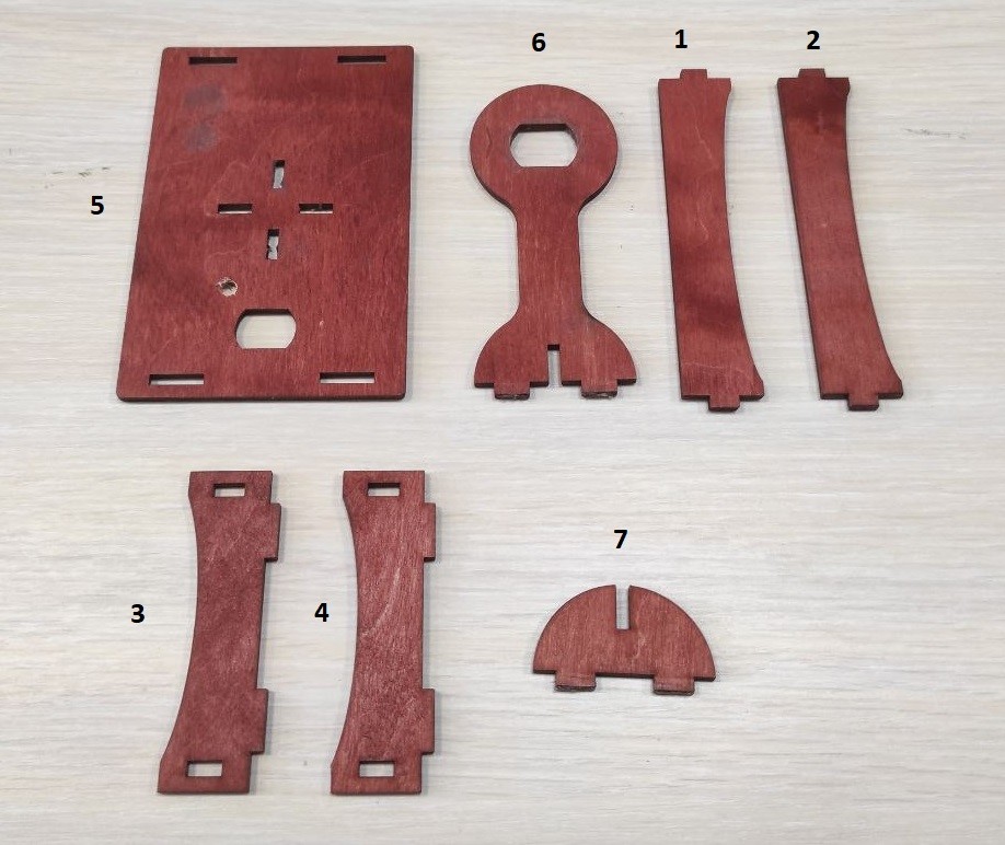 1 Деревянные детали 1, 2, 3, 4 и 5 корпуса вентилятора собираются таким образом, как показано на рисунке 1.