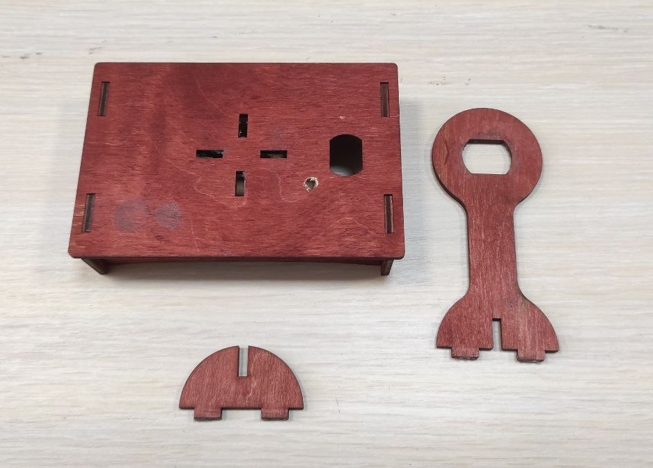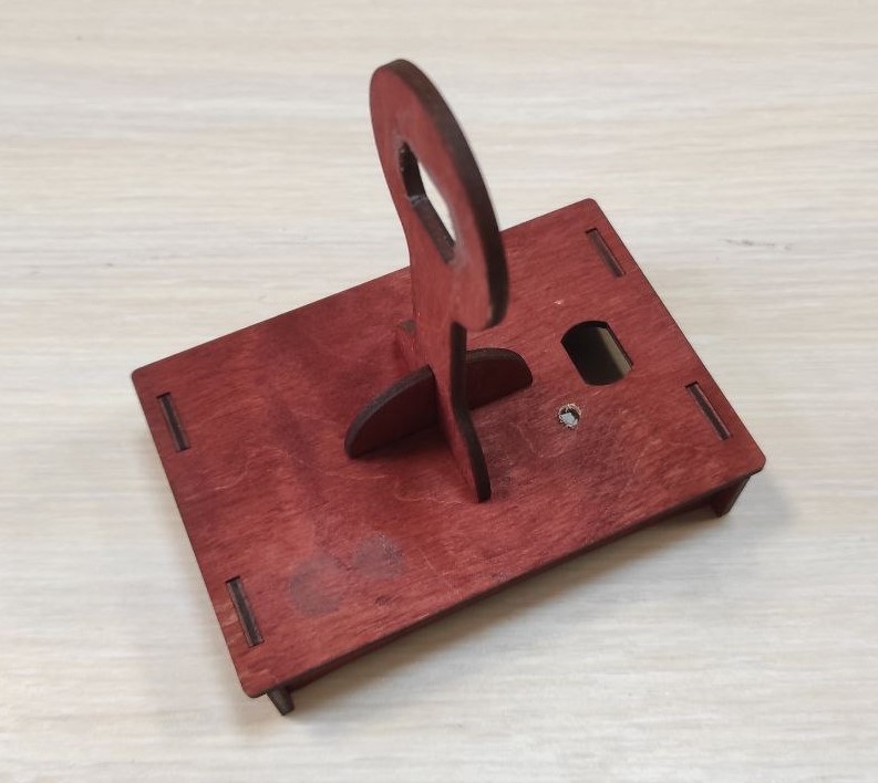 4 Установка кнопки и электромотора в деревянный корпус производится в соответствующие посадочные места с последующей фиксацией термоклеем. Батарейный отсек Б1 устанавливается внутри корпуса. (Рис. 3)